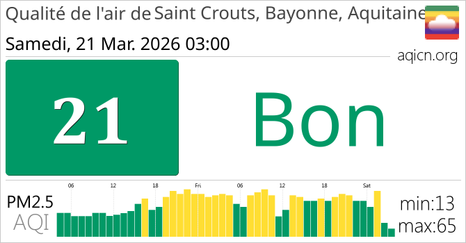 La qualité de l'air à Saint Crouts, Bayonne, Aquitaine, France est Bon