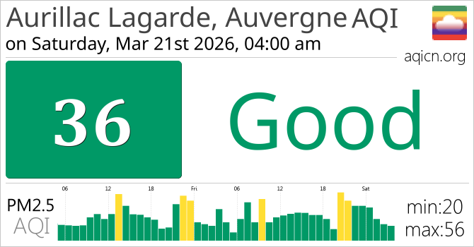 Aurillac Lagarde, Auvergne, France Air Quality is Good