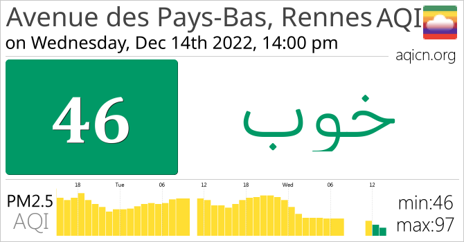 کیفیت هوای Avenue des Pays-Bas, Rennes, France خوب است