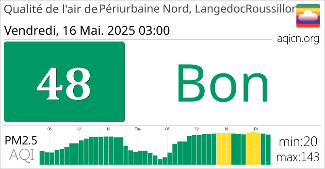 La qualité de l'air à Périurbaine Nord, LangedocRoussillon, France est Bon