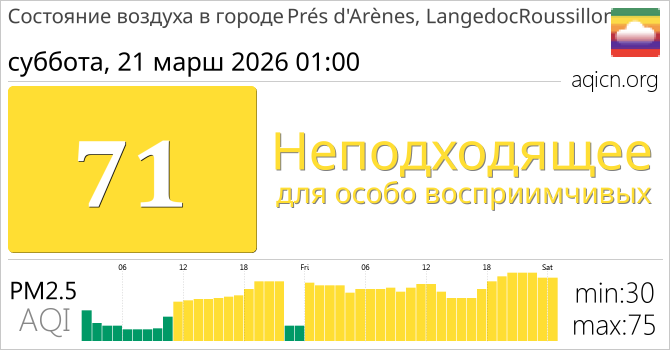 Качество воздуха в Prés d'Arènes, LangedocRoussillon, Франция является Неподходящее для особо восприимчивых