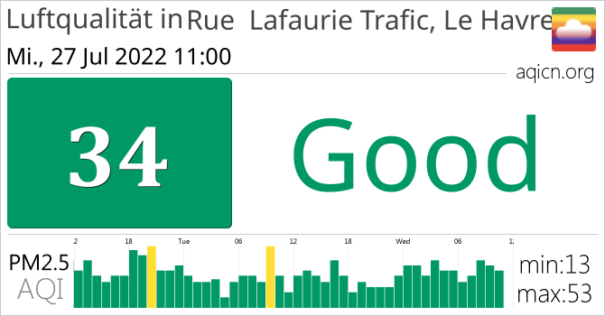 In Rue Lafaurie Trafic, Le Havre, Frankreich ist die Luftqualität Good
