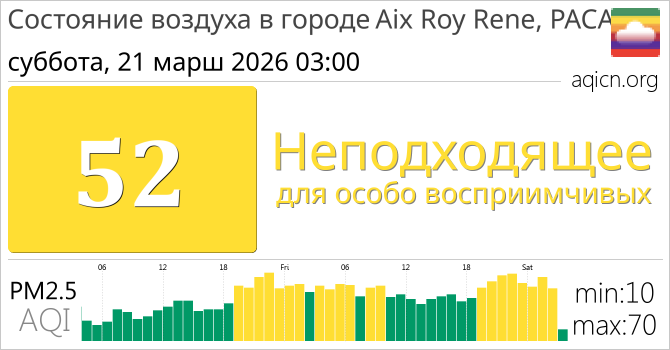 Качество воздуха в Aix Roy Rene, PACA, Франция является Неподходящее для особо восприимчивых