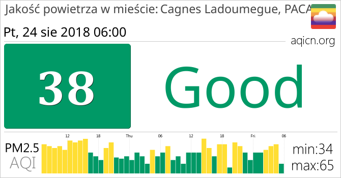 Jakość powietrza w mieście Cagnes Ladoumegue, PACA, Francja jest Good
