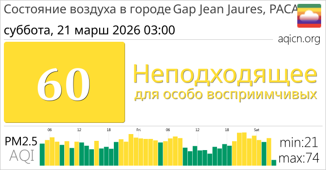 Качество воздуха в Gap Jean Jaures, PACA, Франция является Неподходящее для особо восприимчивых