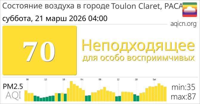 Качество воздуха в Toulon Claret, PACA, Франция является Неподходящее для особо восприимчивых