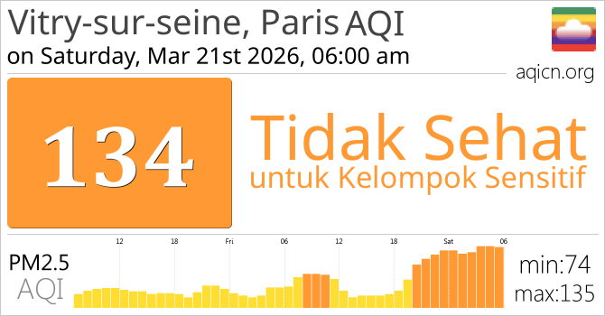 Kualitas Udara di Vitry-sur-seine, Paris, France adalah Tidak Sehat untuk kelompok orang yang sensitif