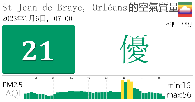 St Jean de Braye, Orléans, 法國的空氣污染指數是優