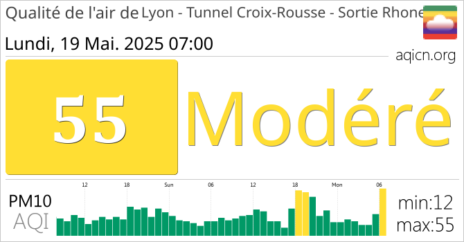 La qualité de l'air à Lyon - Tunnel Croix-Rousse - Sortie Rhone, France est Modéré