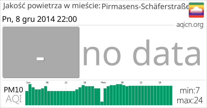Jakość powietrza w mieście Pirmasens-Schäferstraße, Niemcy jest no data