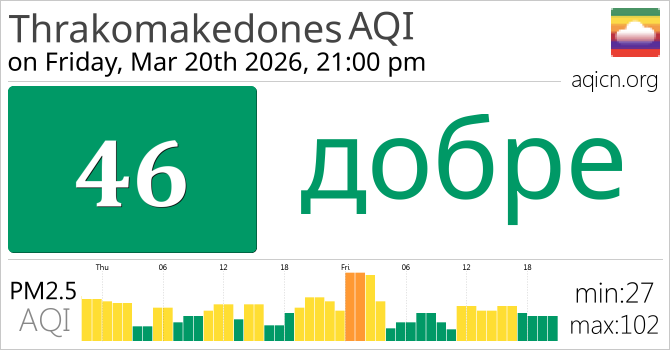 Качеството на въздуха в Thrakomakedones, Greece е добре