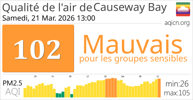 La qualité de l'air à Causeway Bay, Hong Kong est Mauvais pour les groupes sensibles