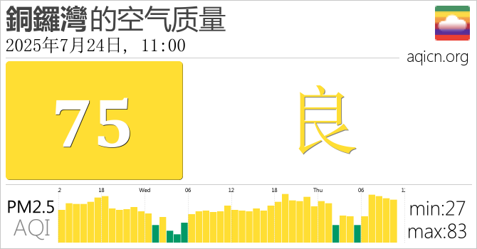 香港銅鑼灣的空气污染指数是良