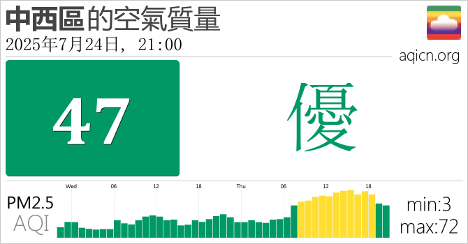 香港中西區的空氣污染指數是優