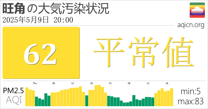 香港旺角の大気質は平常値