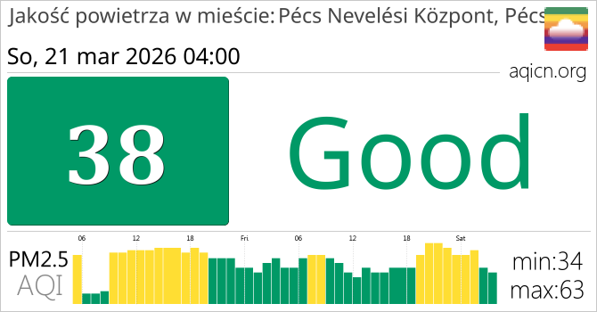 Jakość powietrza w mieście Pécs Nevelési Központ, Pécs, Węgry jest Good