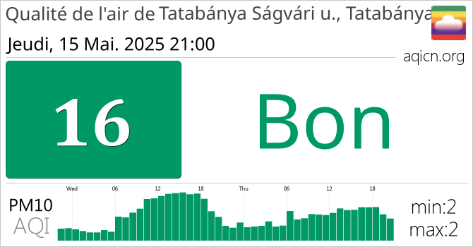 La qualité de l'air à Tatabánya Ságvári u., Tatabánya, Hongrie est Bon