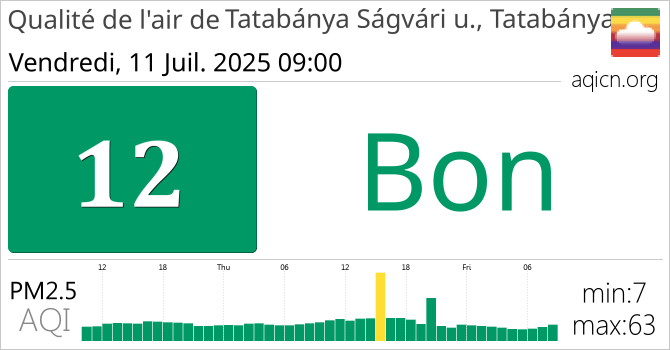La qualité de l'air à Tatabánya Ságvári u., Tatabánya, Hongrie est Bon