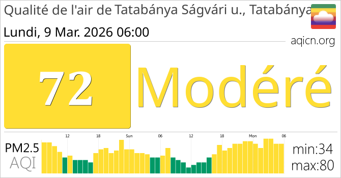 La qualité de l'air à Tatabánya Ságvári u., Tatabánya, Hongrie est Modéré