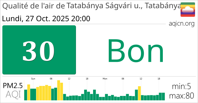 La qualité de l'air à Tatabánya Ságvári u., Tatabánya, Hongrie est Bon