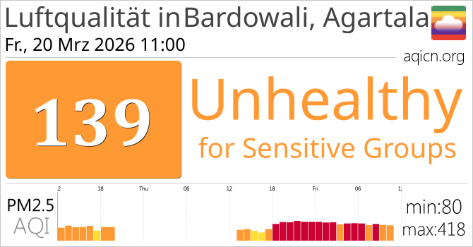 In Bardowali, Agartala, Indien ist die Luftqualität Unhealthy for Sensitive Groups
