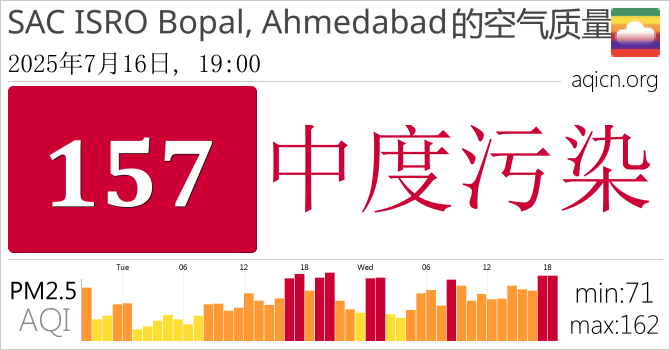SAC ISRO Bopal, Ahmedabad, 印度的空气污染指数是中度污染