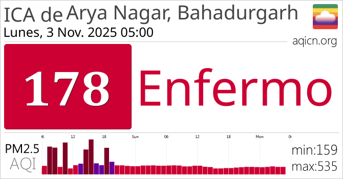 La calidad del aire de Arya Nagar, Bahadurgarh, India es Enfermo