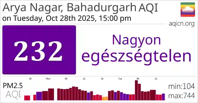 Arya Nagar, Bahadurgarh, India levegőminősége Nagyon egészségtelen