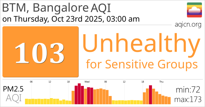 BTM, Bangalore, India Air Quality is Unhealthy for Sensitive Groups