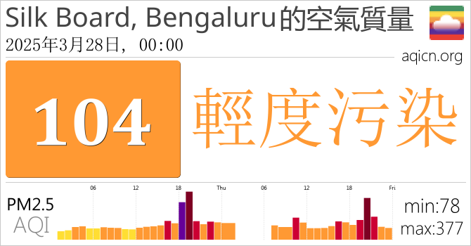 Silk Board, Bengaluru, 印度的空氣污染指數是輕度污染