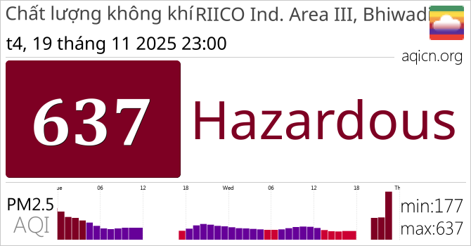 Chất lượng không khí RIICO Ind. Area III, Bhiwadi, India Hazardous
