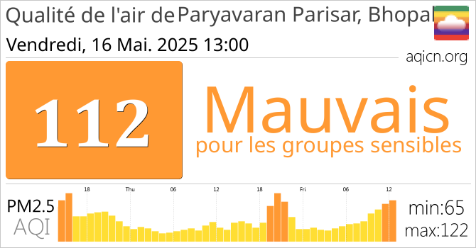 La qualité de l'air à Paryavaran Parisar, Bhopal, Inde est Mauvais pour les groupes sensibles