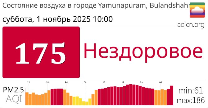 Качество воздуха в Yamunapuram, Bulandshahr, Индия является Нездоровое