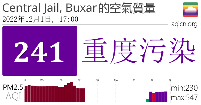 Central Jail, Buxar, 印度的空氣污染指數是重度污染
