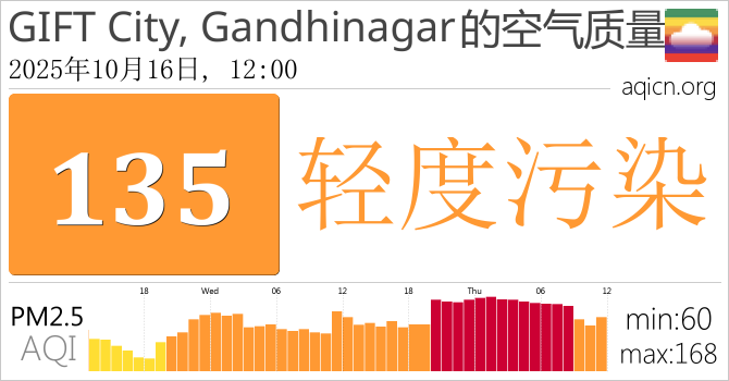 GIFT City, Gandhinagar, 印度的空气污染指数是轻度污染