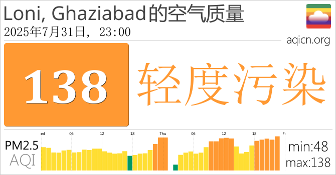 Loni, Ghaziabad, 印度的空气污染指数是轻度污染