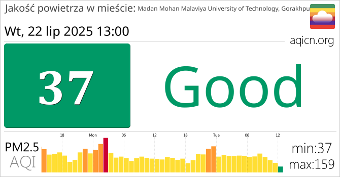 Jakość powietrza w mieście Madan Mohan Malaviya University of Technology, Gorakhpur, Indie jest Good
