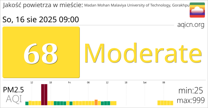 Jakość powietrza w mieście Madan Mohan Malaviya University of Technology, Gorakhpur, Indie jest Moderate