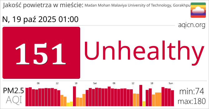 Jakość powietrza w mieście Madan Mohan Malaviya University of Technology, Gorakhpur, Indie jest Unhealthy