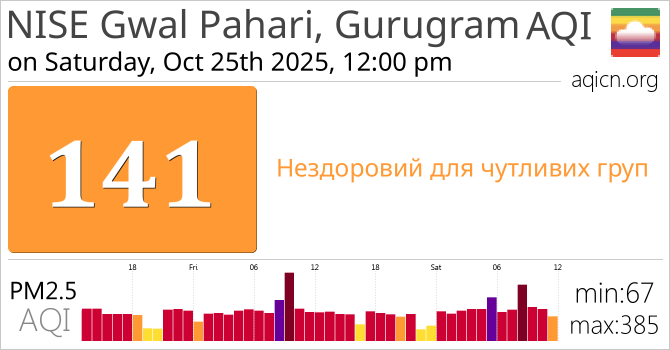 Якість повітря в місті NISE Gwal Pahari, Gurugram, India становить Нездоровий для чутливих груп
