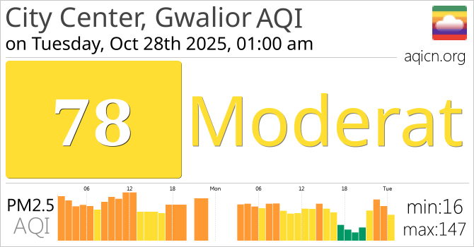 Calitatea aerului din City Center, Gwalior, India este Moderat