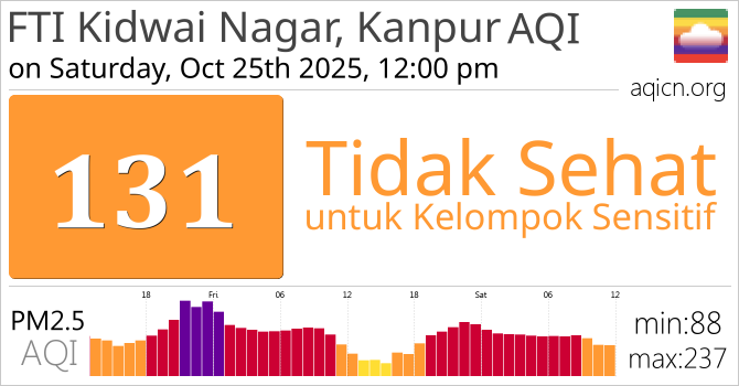 Kualitas Udara di FTI Kidwai Nagar, Kanpur, India adalah Tidak Sehat untuk kelompok orang yang sensitif