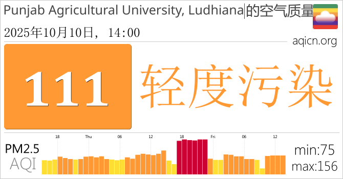 Punjab Agricultural University, Ludhiana, 印度的空气污染指数是轻度污染