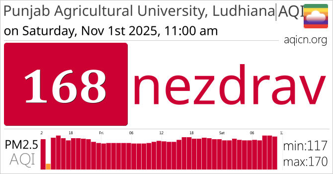 Kvaliteta zraka u gradu Punjab Agricultural University, Ludhiana, India je nezdrav