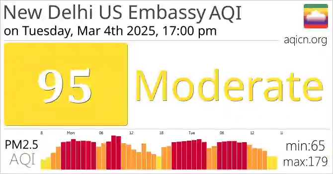 New Delhi US Embassy, India Air Quality is Moderate