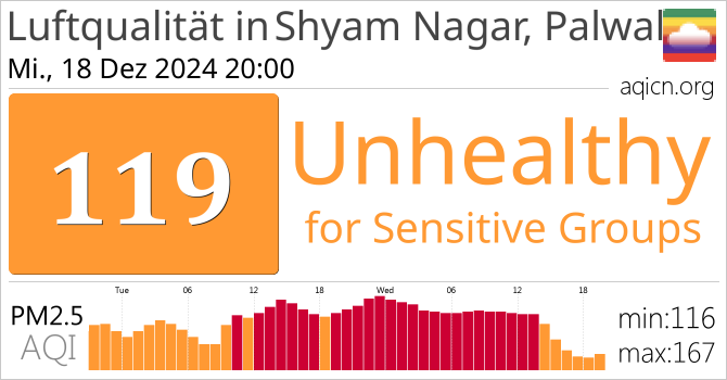 In Shyam Nagar, Palwal, Indien ist die Luftqualität Unhealthy for Sensitive Groups
