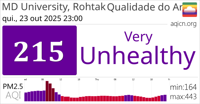 A qualidade do ar em MD University, Rohtak, Índia é Very Unhealthy