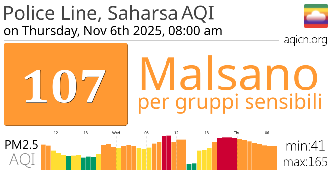 La qualità dell'aria a Police Line, Saharsa, India è Malsano per gruppi sensibili