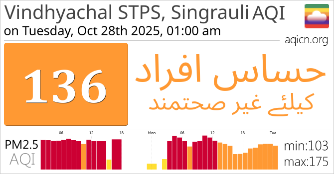 Vindhyachal STPS, Singrauli, India کی ہوا کا معیار حساس افراد کیلئے غیر صحتمند ہے