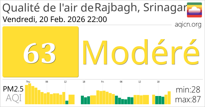 La qualité de l'air à Rajbagh, Srinagar, Inde est Modéré
